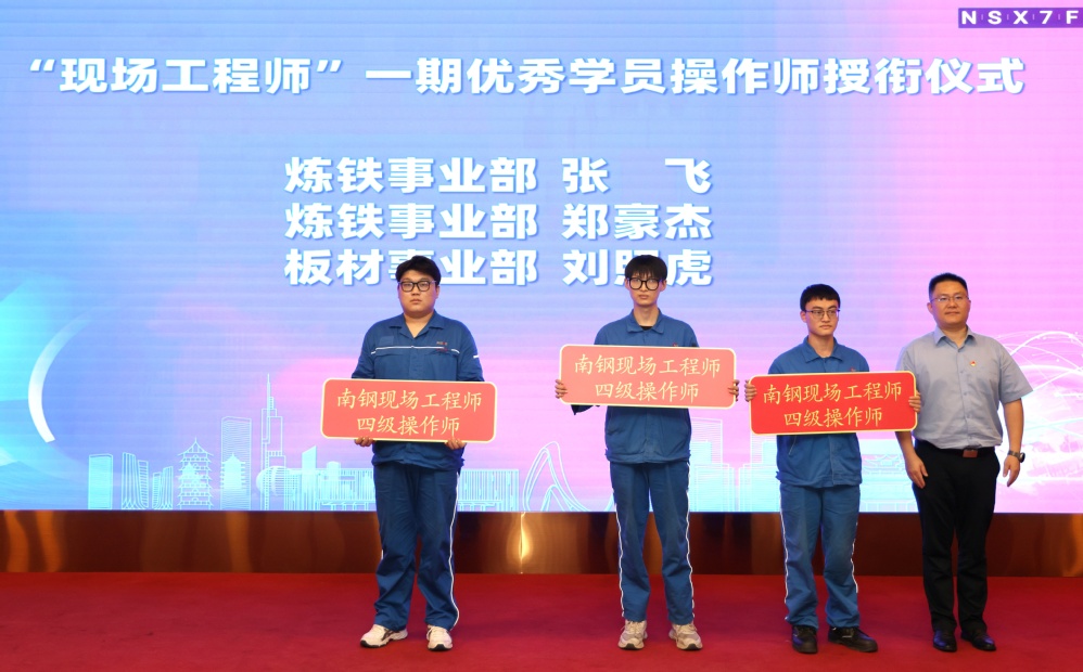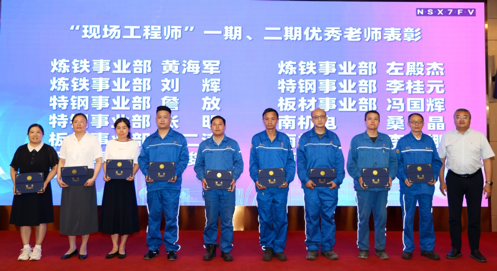 校企双向奔赴育匠才。南机电——南钢一期“现场工程师”联合培养结硕果,28名学员24名入职南钢。在2025年南钢师徒节上,来自机械工程系机自221的刘照虎、智装221班张飞和郑豪杰3人入职即被授衔“四级操作师”,南机电-南钢教师企业流动站的桑晶、李路娜和丁艳玲3位教师被评为“现场工程师一期、二期优秀教师,学院副校长刁爱军为校企优秀教师颁奖。机械工程系余红志、王晨歌老师被评为现场工程师班一期、二期优秀班主任。周庆礼向南钢长期以来对技能传承和人才培养的高度重视表示敬意,向成功结成师徒关系和获奖师生表示祝贺。