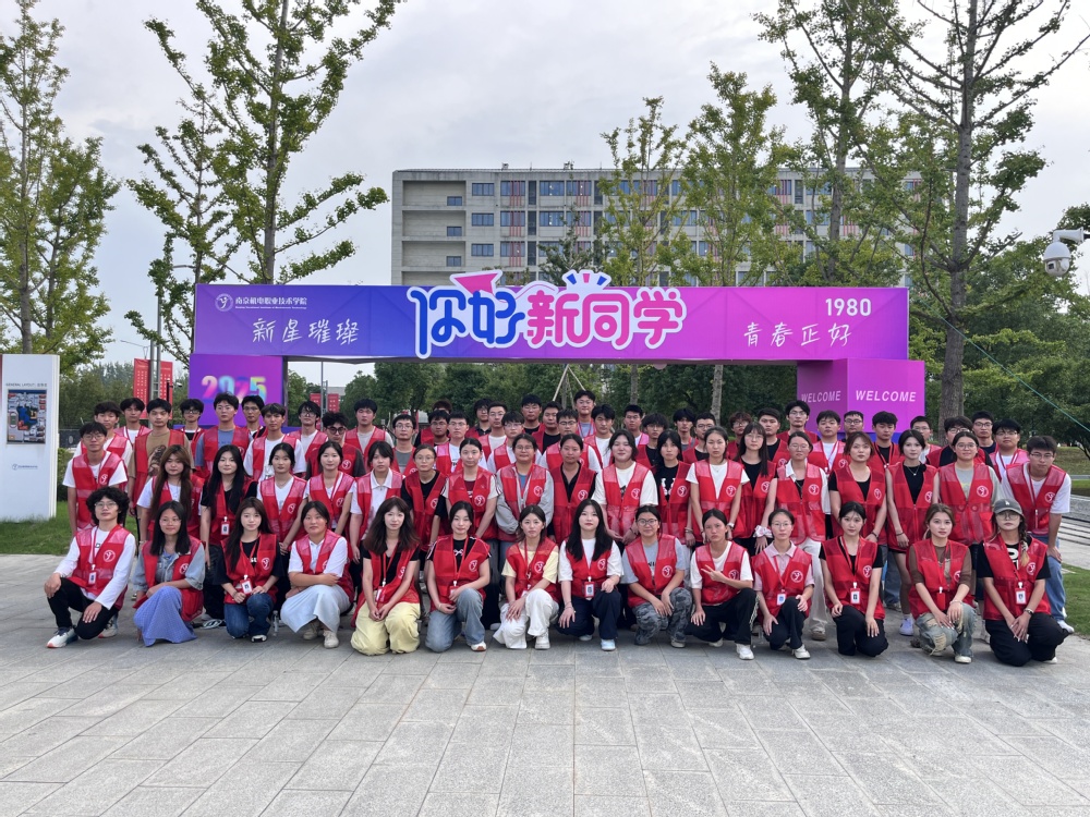 接站志愿者如星火般遍布各大交通枢纽,高举指引牌,第一时间接过沉甸甸的行李,用微笑熨平旅途的倦意;他们耐心答疑,一路讲解校园设施与报到流程,让“初来乍到”化作“初见如家”。迎新志愿者则织就一张流动的心网,穿梭校园、跨越楼层。行李车上堆满期待,指路声中洋溢关切,汗水折射阳光,也折射“奉献、友爱、互助、进步”的誓言。南小电志愿服务队350名成员,以脚步丈量责任,以热情点亮秋色,成为这个九月最亮丽的风景线。