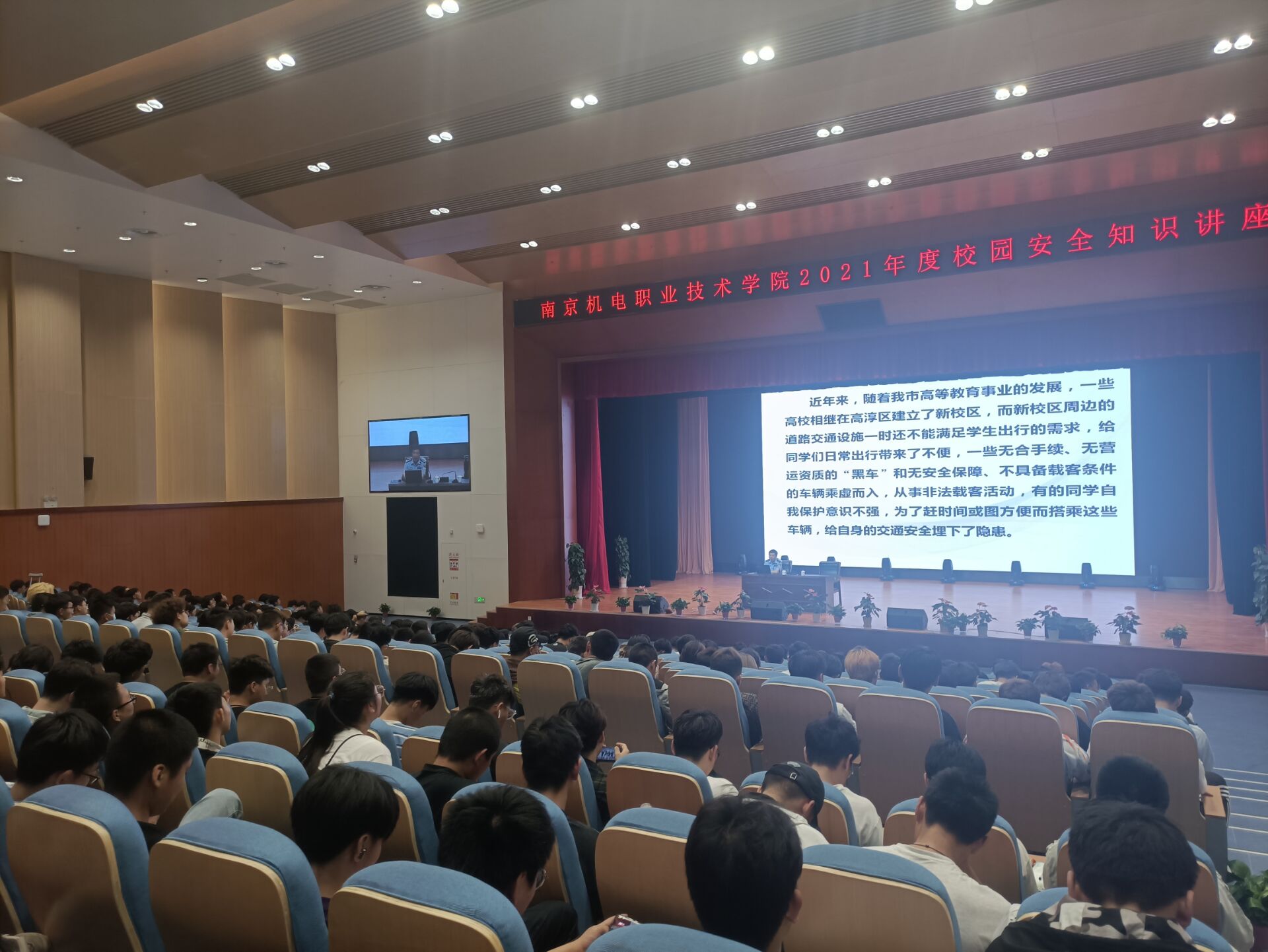 随着我市高等教育事业的发展,我校在高淳区建立了新校区,自今年搬迁以来,由于新校区周边的道路交通设施尚未完善,学生们交通知识欠缺,安全意识淡薄,今天下午校保卫处组织了自动化系的学生在报告厅举行了一场交通安全知识讲座,目的是为了让学生进一步强化交通法律知识,增强交通安全意识,提高自我保护能力。现场请来了高淳区讲师团成员、区公安分局交警大队的张警官,他用生动的案例,通俗易懂的语言,例举了一个个触目惊心的数字,分析了事故发生的原因,并耐心地教会学生识别各类交通信号灯和交通标志。同学们震惊之余,更深刻地感受到遵守交通法规的重要性,体会到生命的可贵。