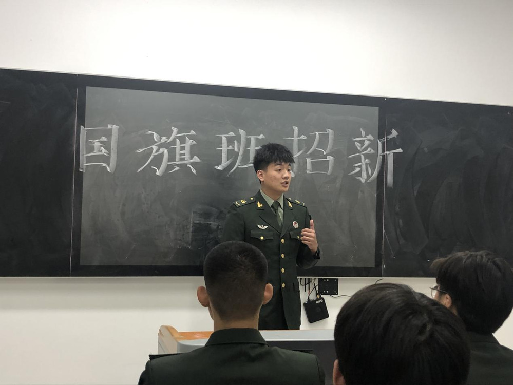 11月11日晚八点,国旗班组织部分新生在博学楼104教室开展21级纳新面试工作。
