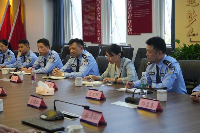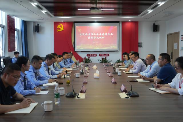 2024年5月14日高淳区政府党组成员、公安分局党委书记、局长陆炼带队,公安分局党委委员、副局长李春华,区内保大队、政保大队、交警大队、网安大队、古柏派出所等领导莅临我校专题调研校园安全工作,南京高职园党工委书记刘宜军,南京高职园党工委副书记、管委会主任孔桂红,高淳区教育局副局长甘育珍,南京高职园党工委委员汪笑云,学校党委书记、校长周庆礼,学校党委副书记、副校长赵学洪,党委宣传部,学工处,保卫处负责人等参加座谈。