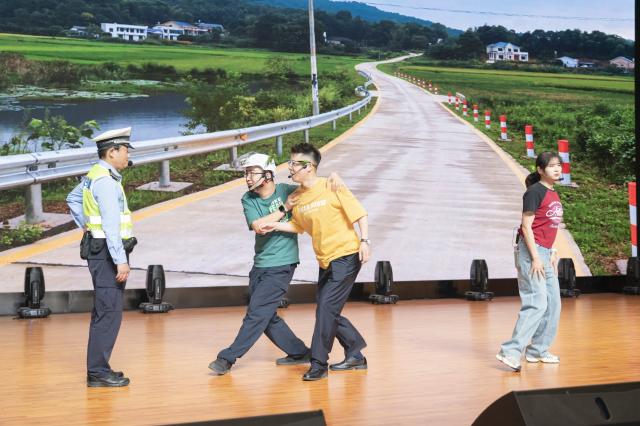 高淳分局交警大队警官们用来源于现实生活的情景剧《冲动的代价》展示遵守交通法的重要性,增强了学生交通安全意识,提高自我保护能力。