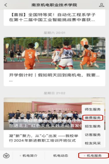 所有学生均通过微信公众号登录“江南网页版”进行缴费。公众号如下显示: