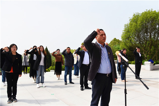 游子山烈士陵园坐落在游子山南麓,全体党员来到陵园中央的“高淳革命烈士纪念碑”,向革命烈士纪念碑敬献花圈。在碑前全体党员集体默哀沉思,缅怀革命先辈的英雄事迹,感受红色文化的熏陶。随后,在高职园党工委书记刘宜军的带领下,全体党员面对党旗庄严宣誓,重温入党誓词。紧接着,全体党员依次为革命烈士献花,有秩序地绕碑瞻仰烈士事迹。