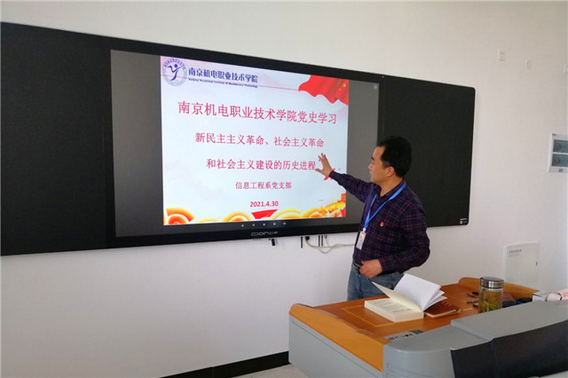 为了贯彻落实《江南网页版关于开展党史学习教育的通知》精神,根据信息工程系党支部的学习计划和安排,信息工程系党支部于4月30日下午,在博学楼306室召开了党史学习教育专题扩大会。本次学习由支部宣传委员卞志勇同志主讲,系部主任王玮同志、支部书记胡枫同志、副主任刘娴同志率全体党员及教职员工参加会议。