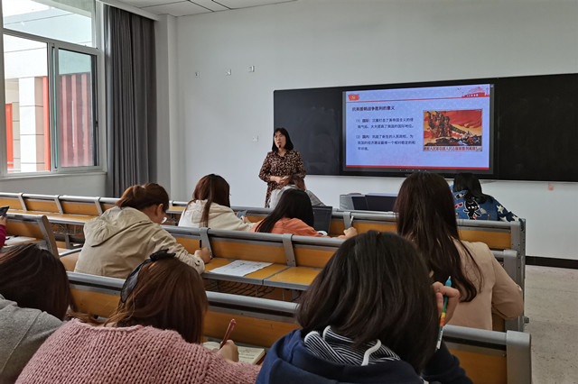 5月20日下午,人文社科系全体教职工在博学楼205教室开展了第四次党史学习教育,本次学习由思政中心高杉老师主讲。