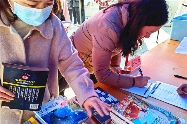 2021年12月,南京市高淳区凤柏村图书室刚刚建立完成,书籍十分匮乏。为践行初心使命,聚焦社会责任办实事,协助凤柏村建立图书室,号召全校师生捐献闲置书籍,学校于12月21日下午在食堂门口开展“童心关爱,共沐书香”爱心捐书活动。