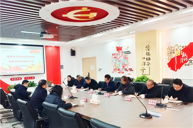 2021年12月31日,学校党委理论学习中心组召开集中学习会议,学校党委书记、院长周庆礼领学,学校党委理论学习中心组全体成员参加。南京机电产业集团党委书记、执行董事、总经理邹克林,党群工作部副部长邹红芹,综合办公室副主任孙家保巡学旁听指导。