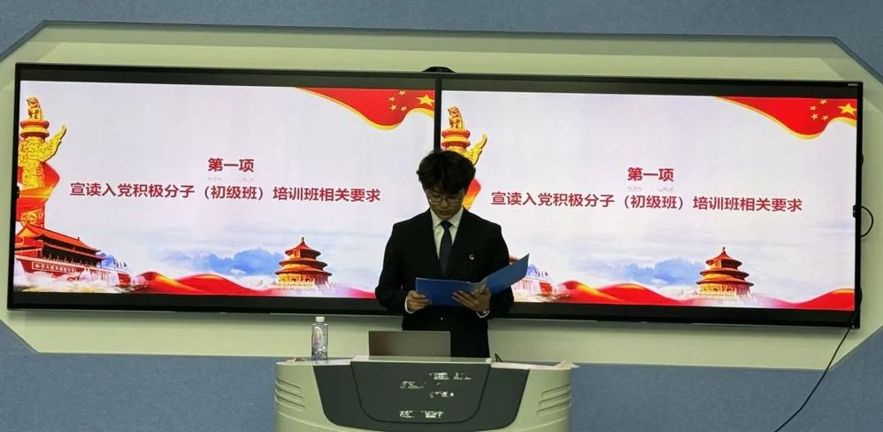 党支部副书记陈雪做开班第一讲《中国共产党的光辉历史》。陈雪要求所有积极分子要思考清楚:为什么要入党,入党以后要干什么。陈书记从中国共产党历史发展的轨迹、百年奋斗的光辉历程展开,带领入党积极分子探寻中国共产党的成功奥秘。陈书记还嘱咐同学们要不忘初心、牢记使命,要以党员标准来要求自己,积极努力参加实践活动来不断提升自己。