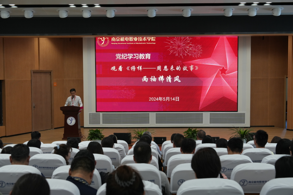 为扎实有序推进党纪学习教育走深走实,进一步引导全体党员坚定理想信念、筑牢政治忠诚、永葆清正廉洁,将党纪学习教育融入日常、抓在经常,5月14日,江南网页版组织全体党员观看教育纪录片《榜样——周恩来的故事》。学校全体党员参加,会议由党委工作部副部长高水冕主持。