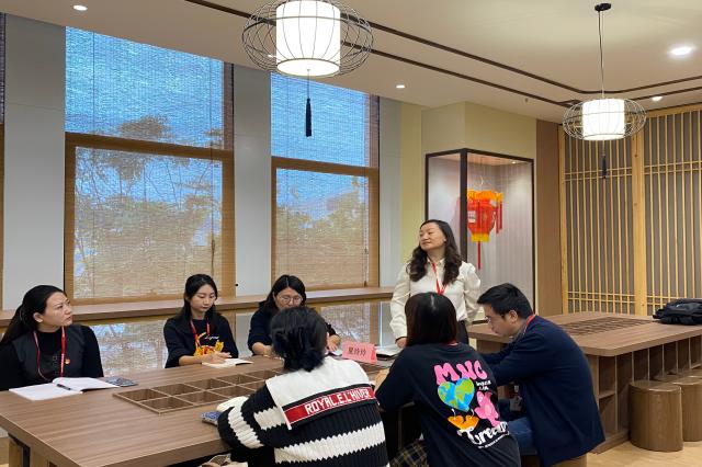 在非遗工作体验室内,系驻点领导孔德丽与党员们亲切交流,他围绕学校与系部的发展大局,结合系部的实际特征,高屋建瓴地提出了“帮重点、解难点、提亮点、补弱点”的四点策略,旨在全面优化全系的教育教学管理,推动系部工作迈向新高度。