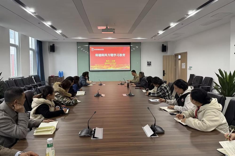 为深入学习贯彻党的二十大精神,落实习近平总书记关于教育的重要论述和教师队伍建设的重要指示精神,12月5日,机关三支部在育德楼210会议室开展了师德师风专题学习教育,并深刻剖析了相关负面案例。此次专题学习由支部宣传委员胡正鑫主讲,支部全体教职工参加学习。