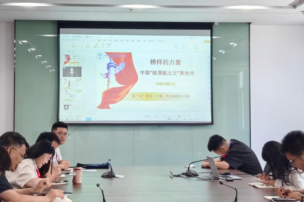 6月5日下午,机关一党支部与纪委机关党支部全体党员齐聚育德楼203室,共同学习中国“核潜艇之父”黄旭华的感人事迹。本次专题党课由林雪主讲。
