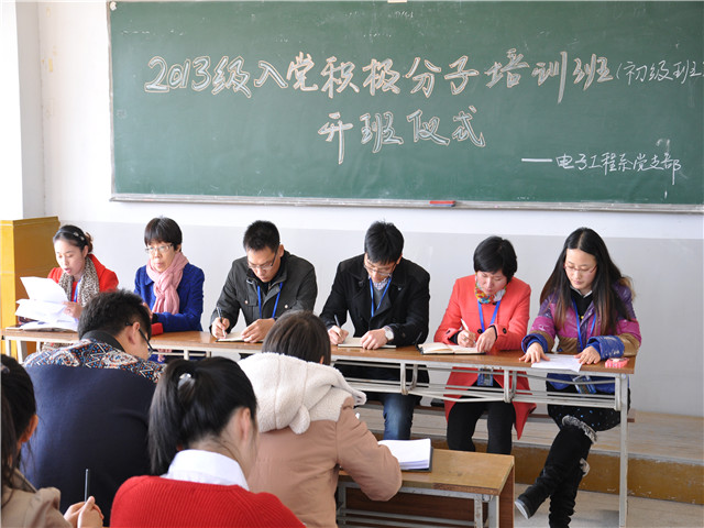 11月18日中午12:30,江南网页版电子工程系党支部在教学楼A208举行2013级入党积极分子初级班培训开班仪式。电子工程系党支部书记张宝中,宣传委员梁金平,组织委员林雪,党员惠珍、权海平、杨瑞以及31名积极分子学员参加了此次开班仪式。仪式由林雪老师主持。
