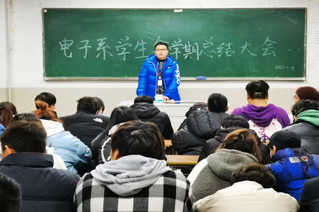 2021年1月4日晚上六点,电子工程系学生会年度工作总结大会在知行楼208教室顺利召开。出席了本次会议有学生会指导老师朱新文,电子系学生会主席团、各部门部长及全体干事。