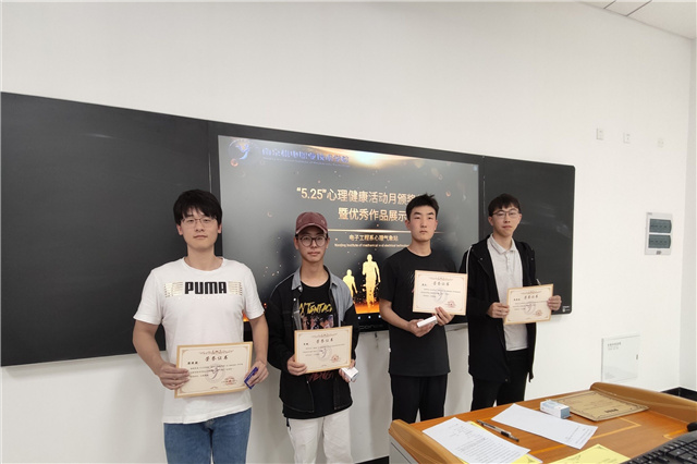 活动中副站长李敏对积极参与心理活动的同学进行了肯定和鼓励,希望大家在今后活动中再接再厉。接着副站长依次给各位获奖同学颁发了荣誉证书和奖品。最后心理气象站为同学们展示了本次系列活动优秀的作品,同时希望大家能够通过学习促进作品的质量提升。