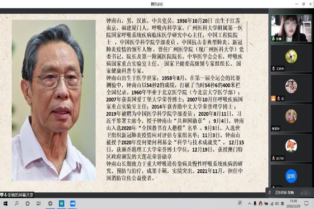 慕雪朝霜,毋改英雄意气,在这个春天,我们缅怀英雄,崇尚英雄,讲述英雄。为积极响应学院党建带团建的号召,我系于3月 22日下午开展“讲述英雄故事”线上云党课活动。此次活动由团总支书记林雪主持,党支部书记吴伟萍带领全系党员老师、团总支副书记刘子涵带领部分团员代表共同参加。