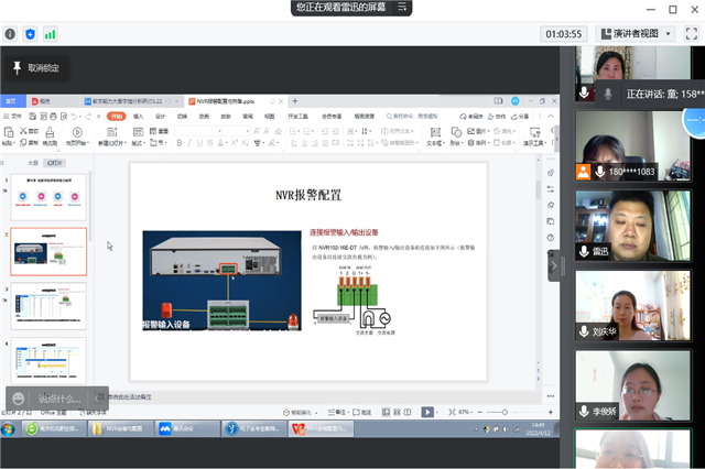 为全面推进专业建设发展,增加教师对专业和专业群建设目标的理解,2022年4月12日电子工程系网络与通信教研室开展了教研活动,进行了集体学习与讨论。本次线上研讨会由物联网专业闫文娟老师主持。本次教研活动主要从《视频监控系统及应用》课程的课程性质,课程内容,上课形式和实验实训项目5个方面阐述这门课程的授课计划和教学设计。