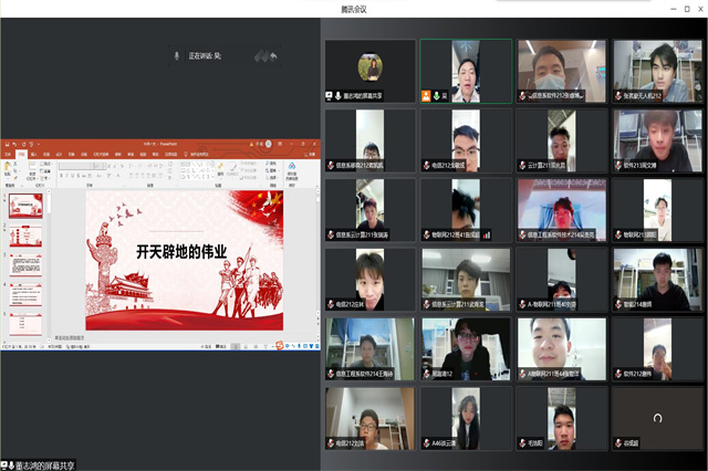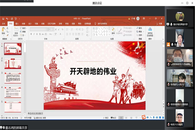 本次特邀思政中心董志鸿主任为大家开展主题为“中共一大会议精神--开天辟地创伟业”主题讲座,支部书记吴伟萍和全体2021级提交入党申请书同学一同在线上学习。