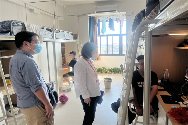 在走访的过程中,老师们亲切地与学生们打招呼,并询问同学们来自哪里,衣食住行、生活是否习惯等方面的问题。同学们纷纷表示正在积极地适应学校的生活环境,适应新生活,转变身份。老师们也对学生们提出了期望,尽管大家来自不同的地方,有着不同的生活习惯,但如今来到了一间寝室,就是一个整体,要互帮互助,互相学习,凝聚每个人的力量,营造积极向上的宿舍环境,度过一段充实难忘的大学生活。希望学生们做好大学期间的人生规划,每一年、每一学期都要有自己的目标,并要朝着这个目标去努力、去奋斗,唯有这样做才不会虚度光阴。
