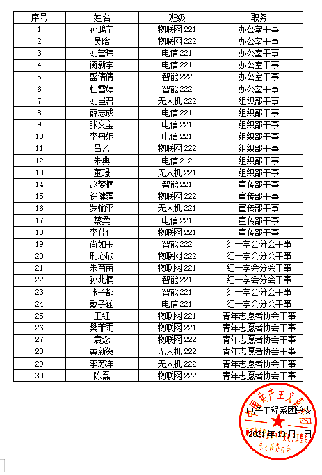 电子工程系第18届团总支全体成员公示