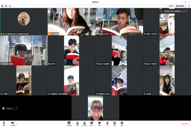 2022年11月15日18点30分,电子工程系团总支组织召开了全系学干线上研讨会。为进一步学习习近平新时代中国特色社会主义思想,本次研讨会通过品读《习近平与大学生朋友们》一书为切入点,通过品读与讨论,旨在帮助学生干部们增长见识,提高分析问题和解决问题的能力。