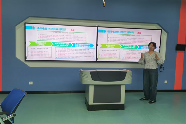 5月23日下午,电子系全体教师认真聆听了郭晓凤老师分享的“思政浸润、岗课赛证融通”——《单片机技术与应用》教学改革实践”课题革命典型案例。教师们对郭老师在单片机技术与应用课程中应用信息化手段,提升学习兴趣;对接岗位需求,赛证有机融入;思政元素浸润,学生素质全面提升等方面留下了深刻的印象并开展了热烈地研讨。