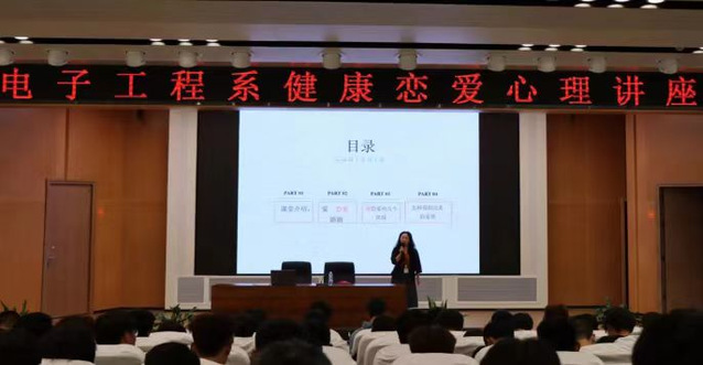为引导同学们树立正确的爱情观,提升我系大学生健康恋爱心理水平,营造积极向上、健康和谐的校园环境。10月26日晚7:00,电子工程系在乐学楼102报告厅开展大学生健康恋爱心理讲座,本次讲座由国家二级心理咨询师老师刘丽担任主讲。