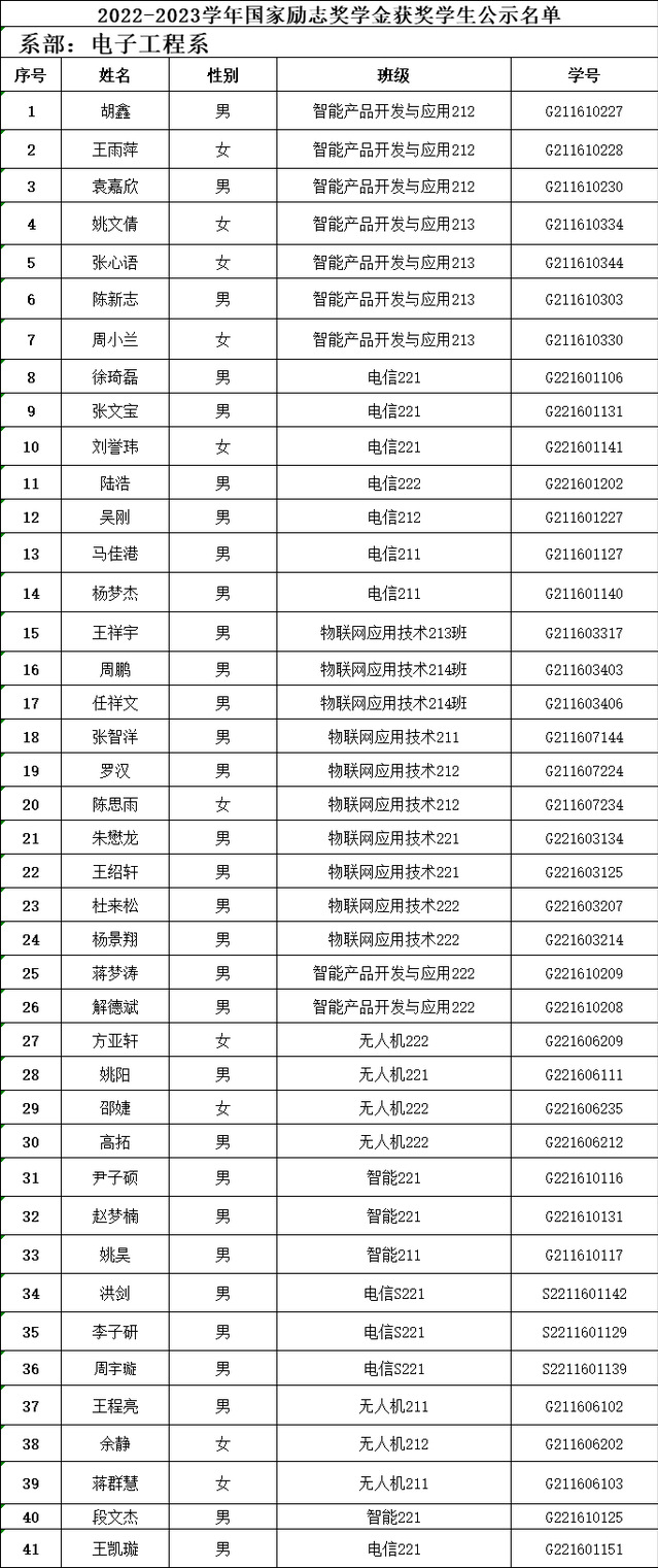 现将2023年国家奖学金申报学生名单向全系进行公示,公示时间为5个工作日。