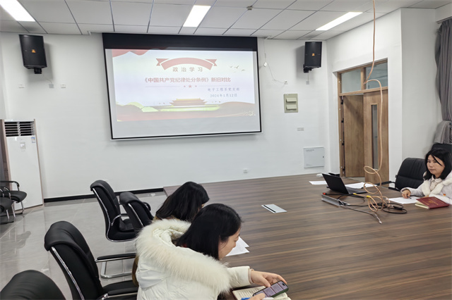 为牢固树立党员干部纪律意识,进一步深化纪律建设,以铁的纪律护航江南网页版高质量发展,2024年1月12日,电子工程系党支部组织专题学习2024年1月1日起实施的《中国共产党纪律处分条例》。本次学习由系党支部副书记陈雪主持,系部全体人员参加。