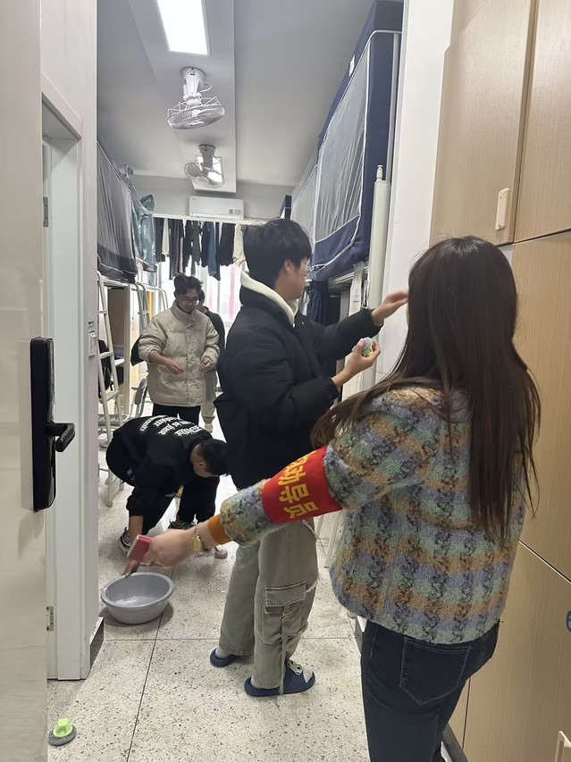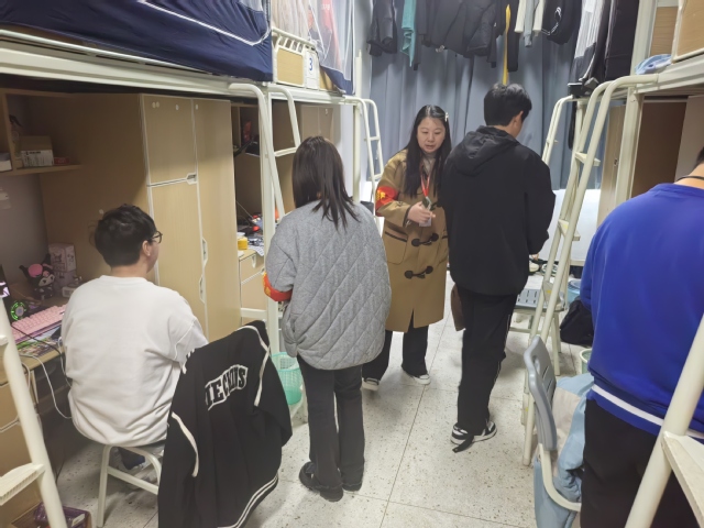 禁烟志愿者小分队走进学生宿舍宣传禁烟知识,通过这样的方式,向同学们讲解吸烟的危害,营造良好的控烟氛围。