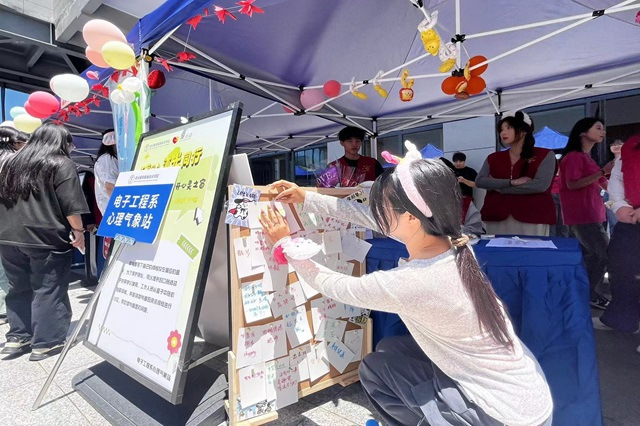 本次活动聚焦培养学生积极的心理品质,结合当代大学生思想心理特点,在内容、形式等方面积极拓展创新。活动中,师生们在明信片上匿名书写愿望,说一说心里话,释放一直以来积压在心口的不安情绪。通过活动,广大师生分享自己的生活小指南和减压妙招,互相借鉴,共同提升心理健康水平。