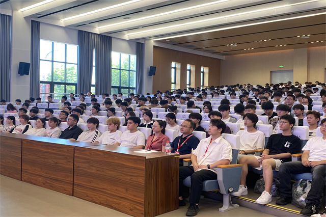 首先,系部主任姚小冬与大家分享了一些鼓舞人心的故事。譬如,今年中国奥运健儿们在巴黎的夺冠经历,由我校牵头研制的科普卫星,同时也是首颗以“南京”命名的卫星—“南京号”八一08星,于2024年1月17日22时27分搭载天舟七号发射升空,等待择机释放,国产3A游戏大作《黑神话:悟空》引发了前所未有的热潮。这些故事不仅铭记着历史的痕迹,展现了国家的力量与魅力,更激励我们坚守初心,在追求梦想的道路上勇往直前。随后,系教学主任丁向琴代表我系全体师生向大一新生表示欢迎和祝贺,详细介绍了各专业的课程设置、师资力量、科研成果及就业前景。通过丁主任深入浅出的讲解,新生们对即将学习的专业有了初步的了解,也激发了对专业学习的热情与期待,同时她强调学生要以学为主,养成善思善学的良好习惯。
