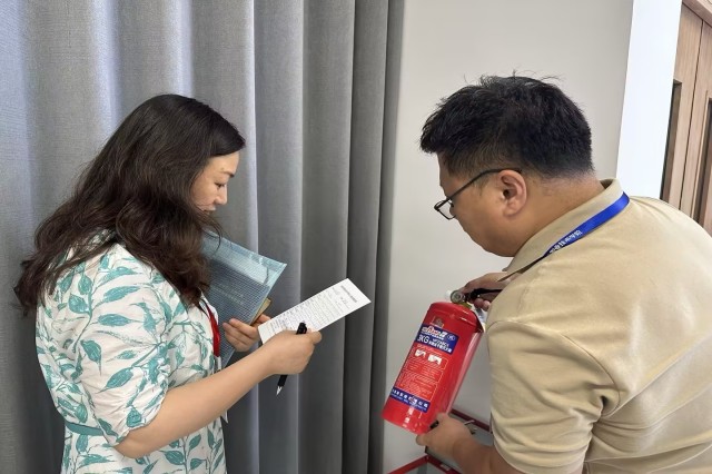 随后,她率队带领系部领导对电子工程系的实训室、教室、办公室等关键区域进行了细致的安全检查。检查内容包括消防设施的完备性、安全通道的畅通性、电器设备的安全性等。在检查过程中,她详细询问了安全管理制度的执行情况,并就系部的安全工作提出了自己的建议。