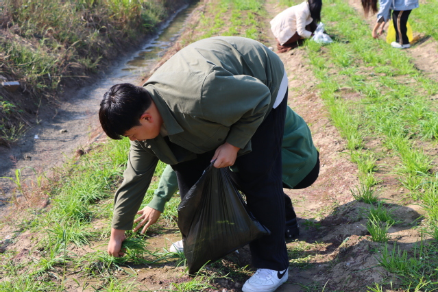 活动前,电子工程系进行了细致的筹备工作,地址选在学校的劳动实践教育基地。正午时分,烈日当空,阳光洒在肥沃的土地上,微风轻拂,带来阵阵泥土的芬芳。学生们怀着兴奋与期待的心情来到活动现场,在老师的带领下,有序地进入各自的劳动区域:韭菜片区、萝卜片区、毛豆片区和白菜片区。