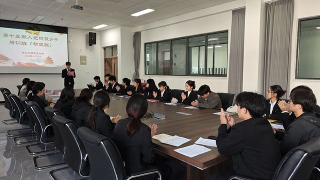2024年11月5日,入党积极分子培训班(初级班)开班仪式在我校“一站式”社区慎行楼304举行。电子工程系党支部副书记陈雪、全体支委和系团委书记魏澜出席本次仪式。此次活动旨在提高入党积极分子的思想政治素质,为党组织培养更多优秀的后备力量。