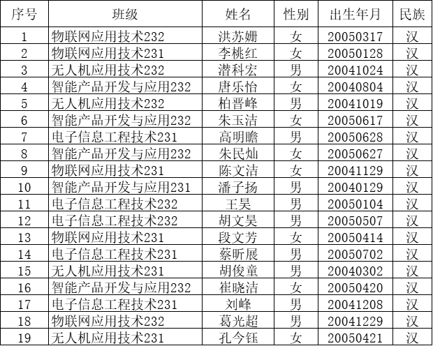 为进一步加强党员发展工作,提高入党积极分子的政治素质和理论水平,经个人申请、团组织推优、党支部研究等程序,确定电子工程系党支部入党积极分子高级班学员名单。现将名单公示如下: