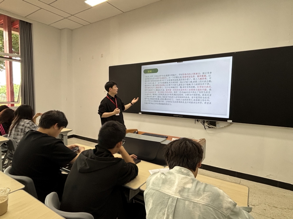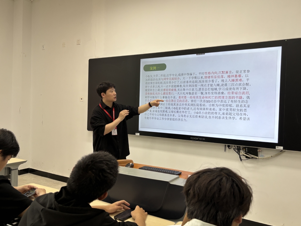 培训伊始,禹花宁老师介绍了心理健康教育的重要性,并指出“在快节奏的现代社会中,学习压力、生活琐事、就业焦虑如同层层乌云,悄然笼罩着大学生的心灵,心理健康问题正成为不可忽视的成长课题。”他结合近年高校心理健康数据,强调心理委员作为班级“心灵守护者”的重要使命,引发在场同学的强烈共鸣。