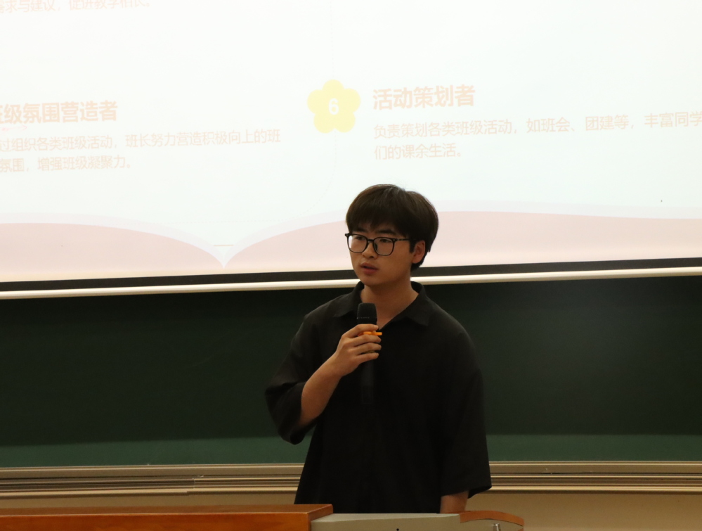 许凯以班长职责为核心,分享了班级管理的具体策略与实践经验。他通过优化分工、强化沟通机制,有效提升了班级凝聚力和工作效率,并展望了未来进一步改进的方向。