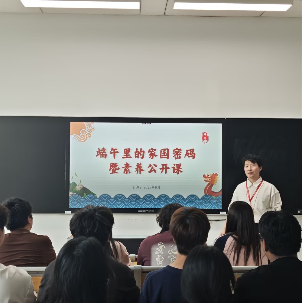 粽叶飘香传文脉,家国情怀润心田。为传承中华优秀传统文化,深化爱国主义教育,6月5日,电子工程系辅导员禹花宁以“端午里的家国密码”为主题,为系部同学带来一堂别开生面的素养公开课,引领青年学子在历史与现实的交织中感悟端午文化的精神内核。