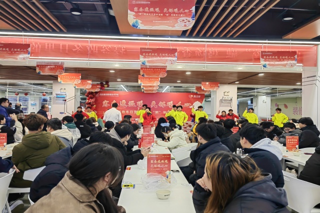 冬至这个节气,自然少不了温暖人心的八宝宴。保温桶里飘出的是阿姨们精心熬制的八宝粥的香气,令人垂涎欲滴。在这寒冷的季节,来上一碗甜甜的八宝粥,让同学们感到无比的安心和满足。