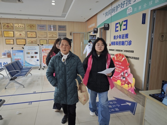 在南京爱尔古柏医院,学生志愿者们协助医护人员引导患者就医,帮助患者挂号、缴费、取药,耐心解答患者的疑问。面对一些行动不便的患者,志愿者们主动上前提供帮助,搀扶他们前往各个科室检查。在陪诊过程中,志愿者们不仅给予患者身体上的帮助,还给予他们心理上的安慰,让患者在就医过程中感受到了温暖和关怀。