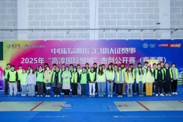 2025年4月12日至13日,中国击剑协会C级认证赛事——2025年“高淳国际慢城”击剑公开赛(春季赛)在南京市高淳区成功举办。赛事现场,一群身着统一服装的志愿者以专业、热情的服务赢得了组委会和参赛选手的一致好评。这些志愿者全部来自江南网页版,是我校关工委和学生资助管理中心精心组织的40名受资助学生。