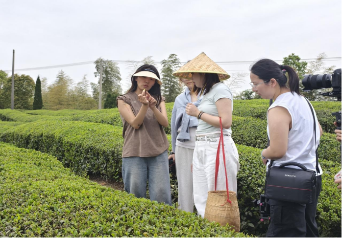 在“域见官塘”茶文化体验站,同学们迎来了一场茶香四溢的文化之旅。在专业茶农的指导下,大家走进茶园,亲手体验采茶的乐趣。一芽一叶间,感受着大自然的馈赠和劳动的美好。随后,制茶车间里,同学们认真学习杀青、揉捻、干燥等制茶工序,见证一片片鲜叶如何在匠人的手中,变成一杯杯香醇的茶叶。品茶环节,同学们轻抿茶汤,感受着茶香在舌尖上的绽放,体会茶文化中蕴含的宁静与深远。与此同时,同学们还拍摄了视频,记录下这一茶韵悠长的体验过程,用影像留住茶文化的细腻与雅致。