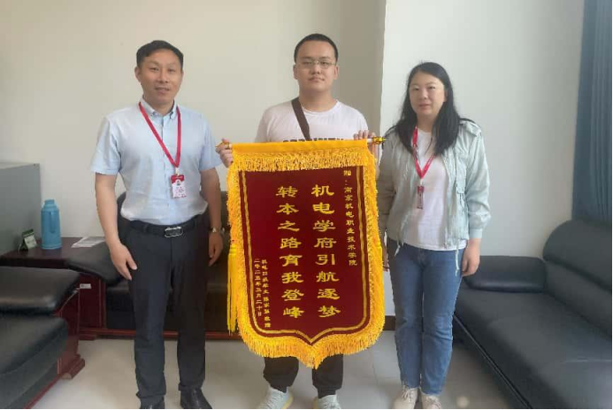 分享会尾声,陈家强同学怀着感恩之情,向母校江南网页版赠送锦旗,锦旗上“机电学府引航逐梦,转本之路育我登峰” 的字样熠熠生辉,饱含着他对母校培育之恩的深切感激。培训处处长周云龙、信息工程系党支部副书记陈雪作为校方代表郑重接受锦旗。周云龙处长表示,这面锦旗不仅是对学校教育教学工作的肯定,更是一种激励,学校将继续努力,为学生成长成才搭建更好的平台。陈雪副书记也鼓励在场同学以陈家强为榜样,明确目标,努力拼搏,在专转本和未来的职业发展道路上实现自己的理想。