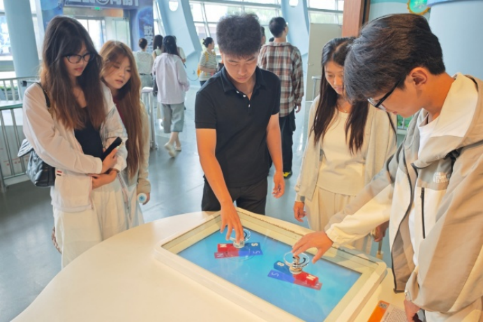 在科技馆专业讲解员的引导下,团学骨干们先后参观了“探索发现”“科技与生活” 等主题展区。从经典物理实验装置到前沿智能装备,从能源开发技术到航天工程模型,讲解员结合展品背后的科学原理与发展历程,生动诠释了 “科技立则民族立,科技强则国家强”的深刻内涵。信息工程系团学干部李同学在互动体验区驻足良久,他表示:“机械结构与信息技术的融合展品让我深受启发,这正是跨学科创新的生动体现。”