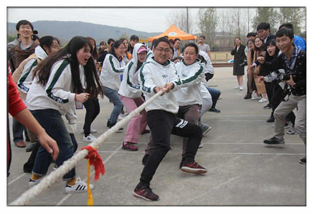 2017年11月11日下午,我系分工会参加了学院第一届“回味童年”教职工趣味运动会。本次比赛以丰富教职工业余生活,增进彼此之间的了解,形成团结友爱的工作氛围为目的。本届教职工趣味运动会比赛项目共有六项,分别是:扔飞镖、抽陀螺、滚铁环接力、奔跑吧兄弟、砸沙包和拔河。本次学院8个分工会共计派出185名运动员,是我院历史上教职工参赛人数最多的一次的运动盛会。