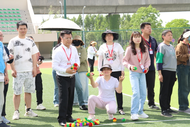 “精准投喂——果园采摘大作战”则充满趣味,参赛师生密切配合,站在指定区域外的队友专注地将“水果”投向背篓,负责接球的队友全神贯注,努力接住每一个“水果”,在提升专注力与耐心的同时,也增强了团队间的信任。