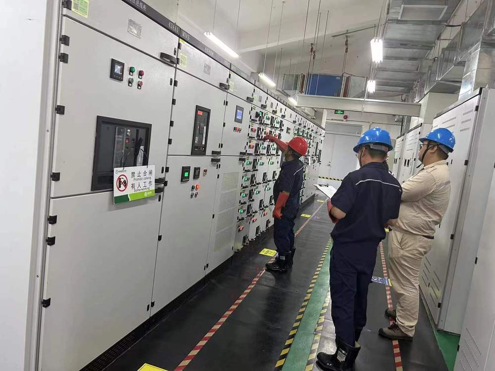 7月13日,1#配电房模拟因二期建设施工挖断1#变压器电缆导致设备故障无法供电,维修人员检查停电原因后确定短期内无法修复,通过合母联,用2#变压器带全部负荷,高压值班人员进行倒闸操作,操作完成后值班人员加强巡视,检查配电设施运行情况及各项参数是否正常。