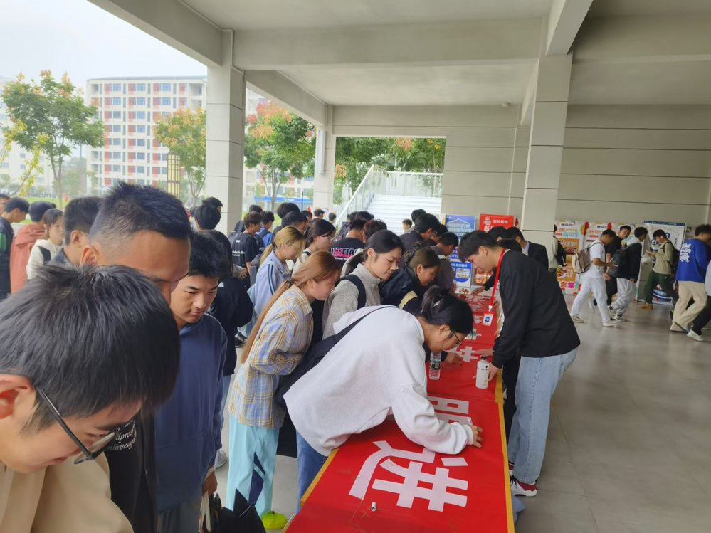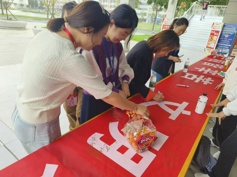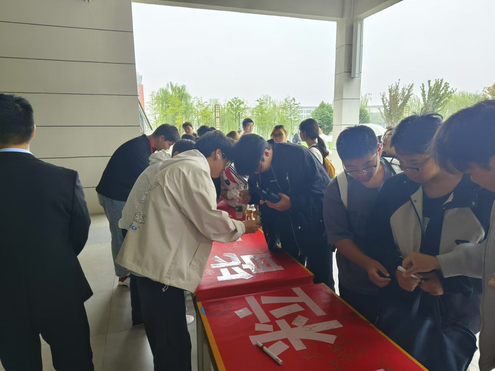 师生们驻足观看宣传内容,在横幅上签下自己的姓名,大家纷纷表示,将从自己做起,从点滴做起,珍惜每一粒粮食,为保障粮食安全贡献力量。签名活动结束后还将开展为期7天的“光盘行动”线上打卡活动,将节约粮食的良好习惯落实到学生日常生活中。